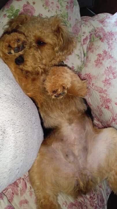 Within two hours after lots of love and cuddles, Dyls was back to doing what she does best – chasing the cats, jumping on Wiglet – albeit at a slightly slower pace.