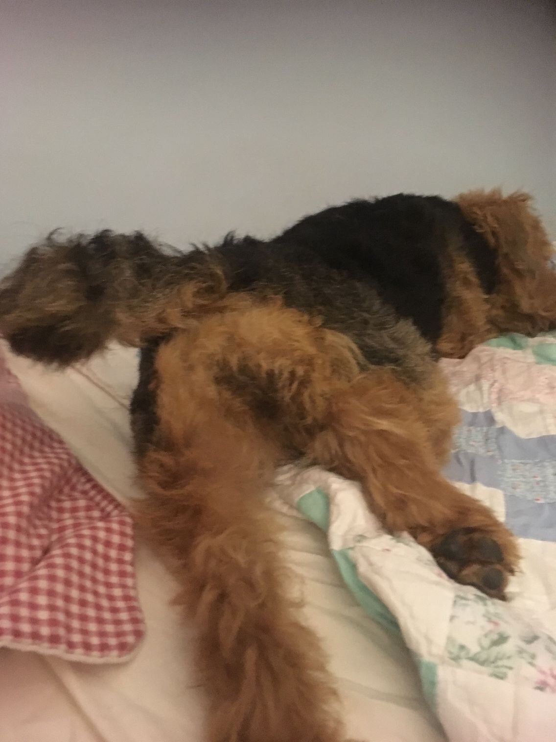 Within two hours after lots of love and cuddles, Dyls was back to doing what she does best – chasing the cats, jumping on Wiglet – albeit at a slightly slower pace.